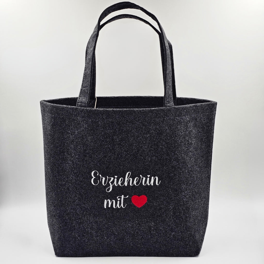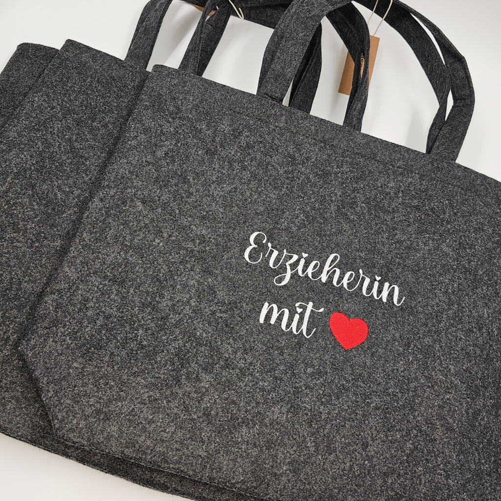 Filz Shoppingtasche – Bestickt mit „Erzieherin mit Herz“ | Personalisierbar